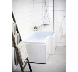 Høyreutførelse. Et lite og praktisk badekar i akryl med god dusjplass. Badevolum på 210 liter. Perfekt for deg som har liten plass, men som både vil kunne bade og dusje. Kan fås i både høyre- og venstreutførelse. Inkludert front- og sidepanel.