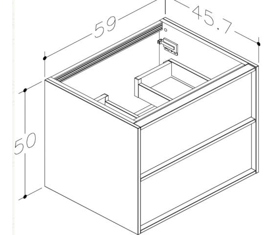 Møbelet er laget av eikefiner med hvite skuffer på innsiden, utstyrt med antisklimatter og skinner med myk demping. Servantskapet kan kombineres med benkeplate og bolleservant, eller med en heldekkende servant – alt etter stil og behov.