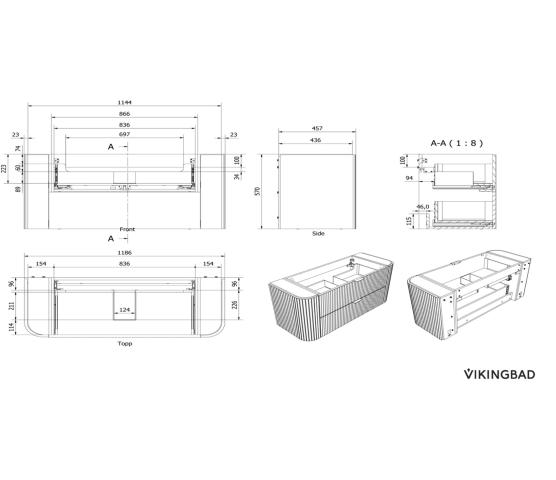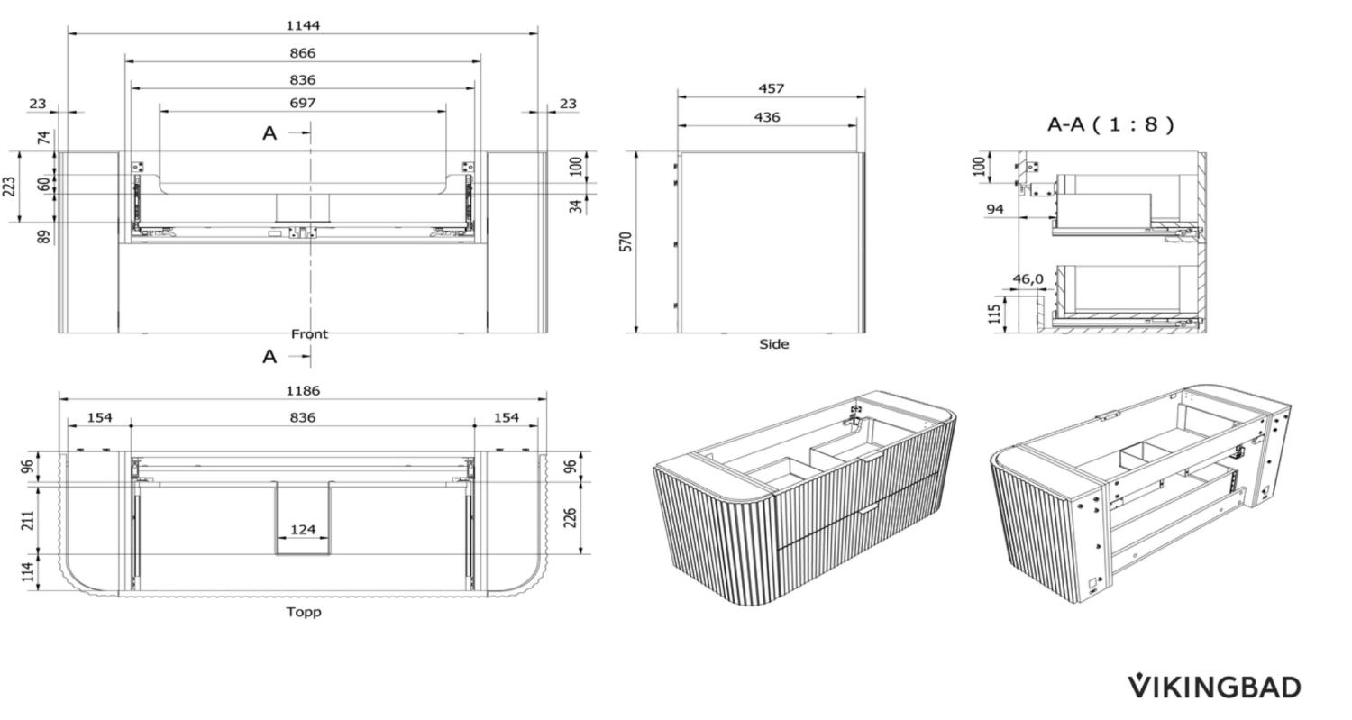 Nå kan Mie også leveres med en elegant, buet sidehylle som erstatter tradisjonelt sidepanel. Den buede løsningen gir ekstra oppbevaringsplass og tilfører møbelet en mykere, mer organisk form. Har du allerede et Mie servantskap, kan du enkelt oppgradere med buede hyller. Vær oppmerksom på at dette krever ny servant eller benkeplate.