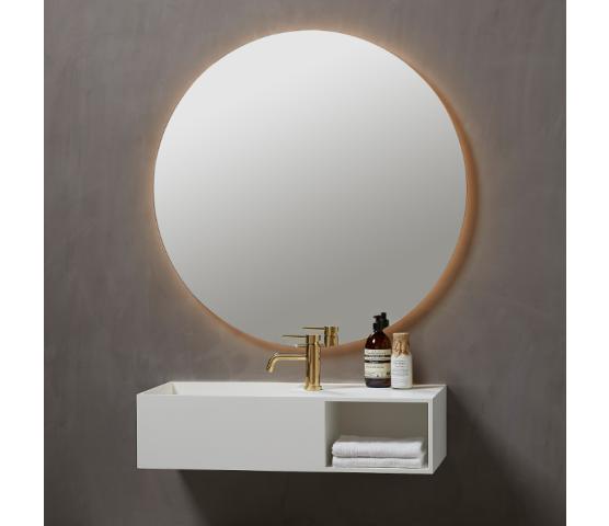 Runde speil kommer også med smarte detaljer, som integrert lyskant langs rammen. Dette gir optimal belysning for daglige rutiner, samtidig som speilet får en svevende effekt og skaper et vakkert lysspill på veggen. Resultatet? En harmonisk og innbydende atmosfære.