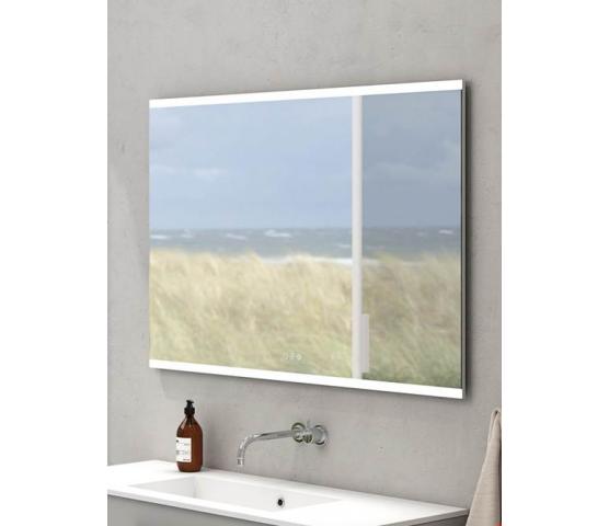 Speil med vannrett lys oppe og nede som gir optimal belysning. Speilet kommer med et lysstyringspanel som gir deg mulighet for trinnløs demping og fargetemperaturstyring av lyset. Lysrammen ligger bak glassfasaden, slik at overflaten er svært rengjøringsvennlig. Speilet finnes også i flere bredder.