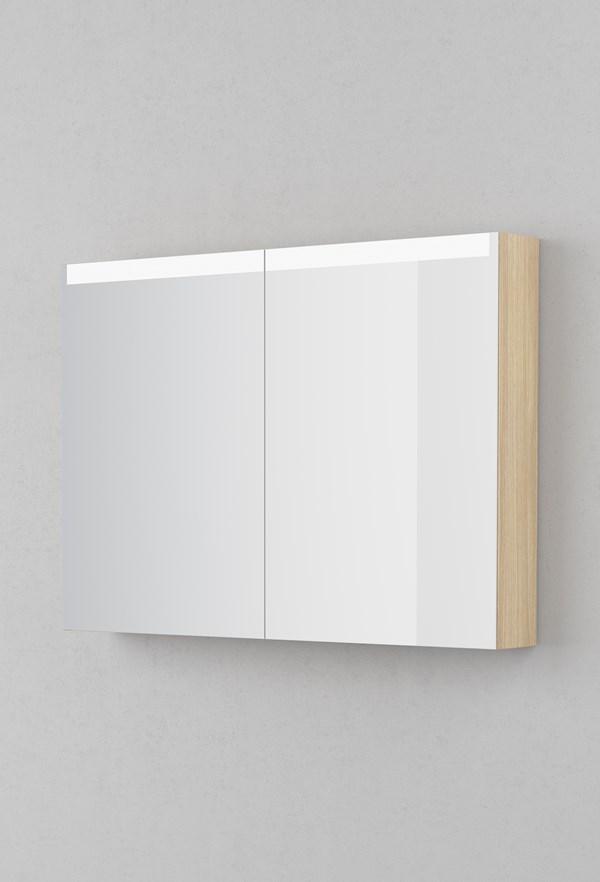 Flere speilskap kommer dessuten med integrert LED-belysning i speilet, slik at du får optimale lysforhold både morgen og kveld – uten å måtte gå på kompromiss med stilrent design.