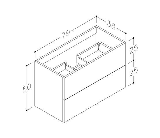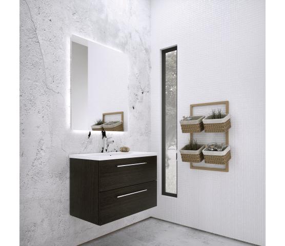 Pine møbelsett er en serie slim modeller med kun 39 cm dybde. Det avbildede settet består av underskap med to skuffer med dempelukking og er inkludert grep.