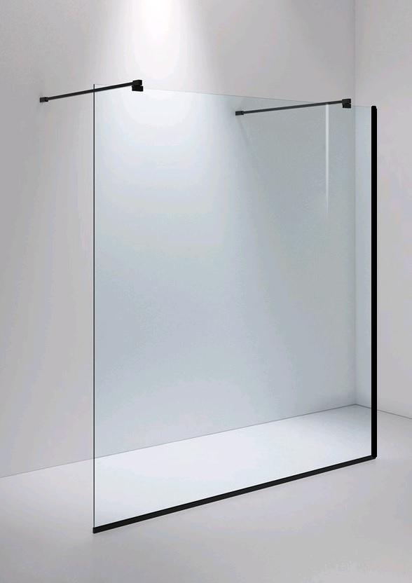 En walk-in-dusj med Arc Frame-skinne som gir deg en dusjopplevelse som er like avslappende som et langt bad. Modellen som med sitt 8 mm tykke glass og blankpolerte detaljer tar opp samme gulvplass som et tradisjonelt badekar og som ikke har dører, noe som skaper en lekker og åpen dusjopplevelse.