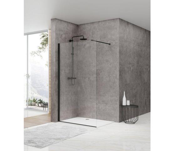 Town fastvegg løsning leveres med matte sorte profiler og klart herdet sikkerhetsglass.