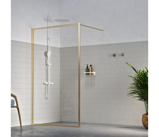 Med sin børstet gullramme er denne walk in dusjveggen type A3 fra Contour-serien ideell for oppgradering av badet ditt. Detaljene er subtile, men absolutt ikke til å gå glipp av. Takket være den minimalistiske designen har denne dusjløsningen et romslig utseende. Perfekt for det mindre badet. Det 6 mm tykke sikkerhetsglasset er også belagt med et anti-kalkbelegg, som holder dusjen din krystallklar lenger. Det 1 meter lange stabiliseringsstaget kan forkortes til hvilken som helst lengde og til og med monteres i vinkel. Så din Contour walk-in dusj vil nesten alltid passe.