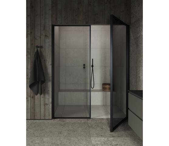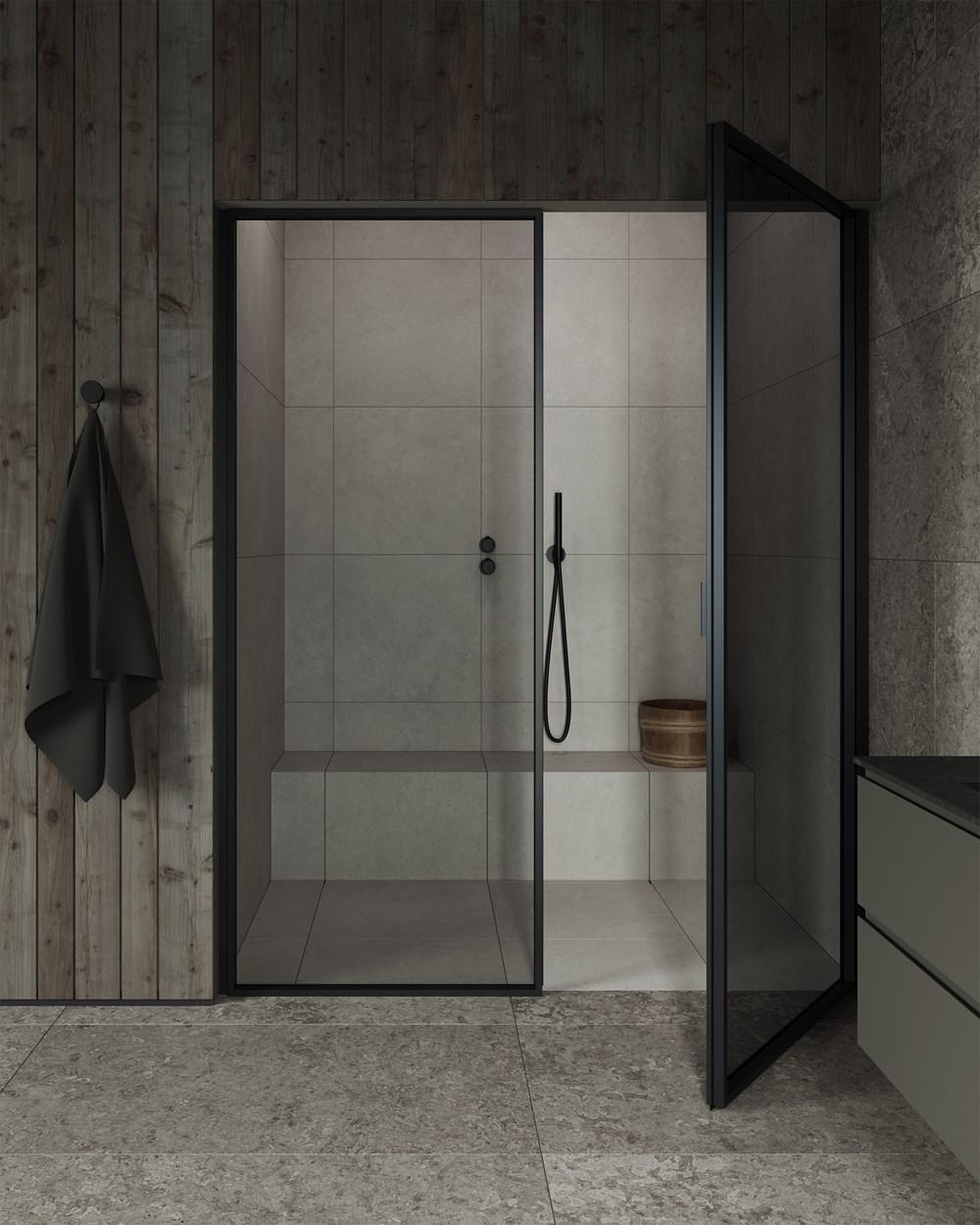 Hver nyanse og hver struktur er resultatet av et nøye arbeid, der balanse og samspill har vært like viktige som det visuelle uttrykket i seg selv. Designet har hele tiden tatt utgangspunkt i helheten. Granittkeramikken er utviklet for å fungere sammen med våre finérer, dusjglass og metalloverflater – slik at baderommet oppleves som et helhetlig miljø.