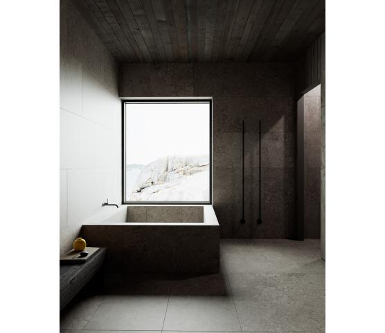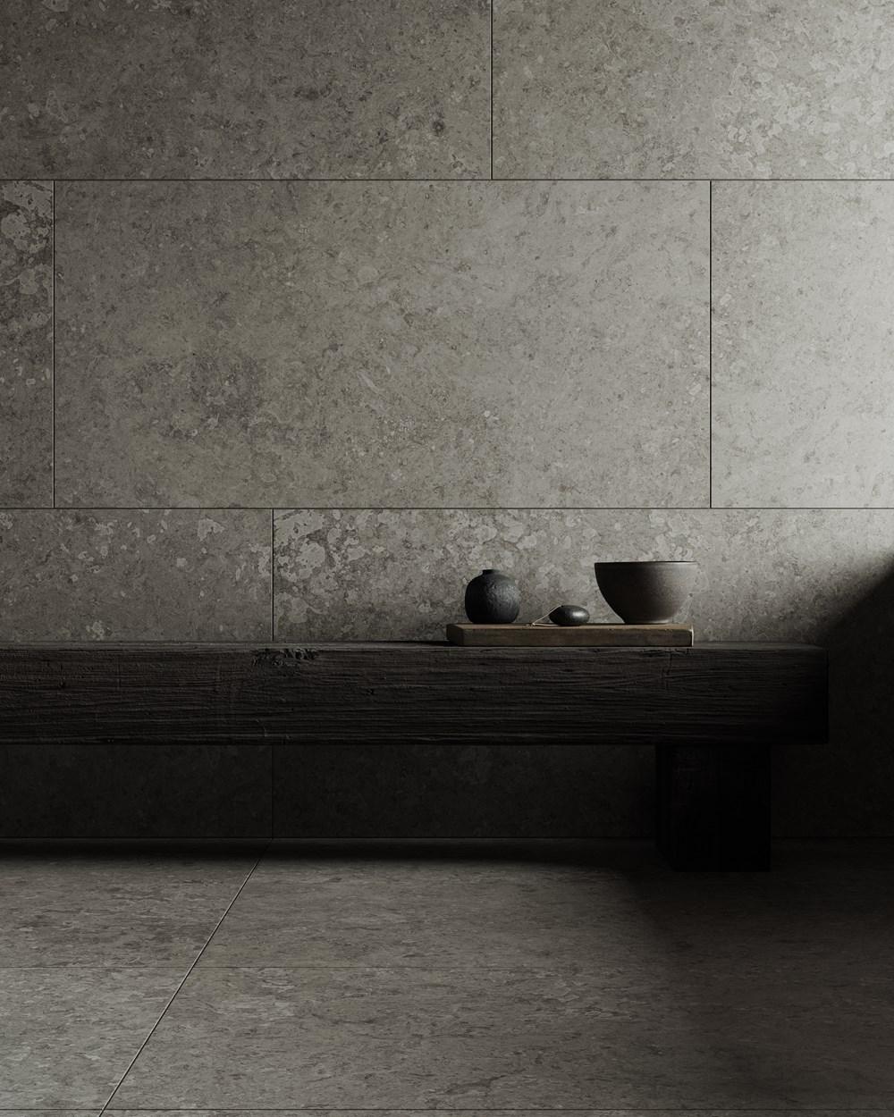 To verdener av sten, formet gjennom is, vind og tid. Inspirert av den samme nordiske naturen, men med ulikt temperament – den ene rå og uttrykksfull, den andre rolig og harmonisk. Alvaret og Stenvide er granittkeramiske tolkninger av nordisk kalkstein. Her møtes natursteinens uttrykk og taktile følelse med granittkeramikkens slitestyrke – i overflater skapt for baderom som skal vare over tid.