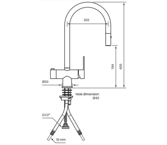 En uttrekkbar tut lar deg fylle de største grytene enkelt og gjør rengjøringen av kjøkkenet hurtigere.