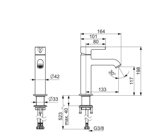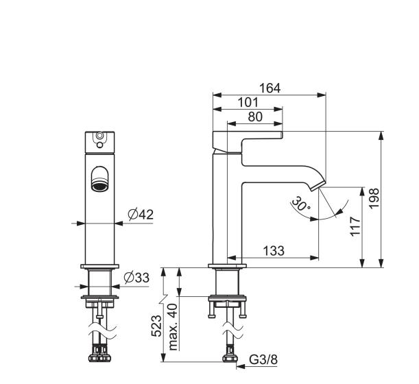 Ettgreps servantbatteri i krom med pinnehendel for et klassisk moderne design. Høyde 19,8 cm. En solid, trygg og holdbar servantkran, både i design og levetid, og gir deg glede og trygghet i mange år fremover.