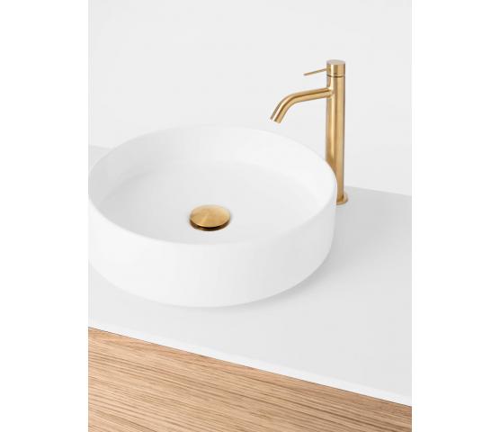STEEL VOYAGE High til ovenpåliggende servant er et minimalistisk og samtidig eksklusivt servantbatteri produsert i rustfritt stål og dermed blyfritt. Servantbatteriet er fargematchet med ARC Original og håndkletørkeren LINE i Unleashed-finishene Brushed Stainless, Brushed Bronze og Brushed Brass.