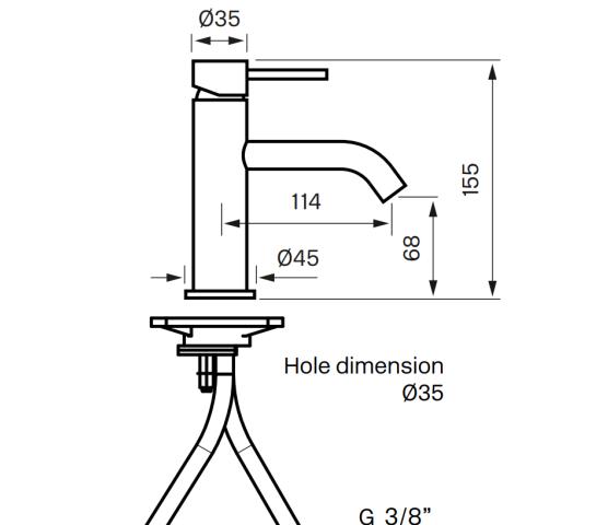 Utstyrt med keramisk innmat og fleksible tilkoblingsrør.