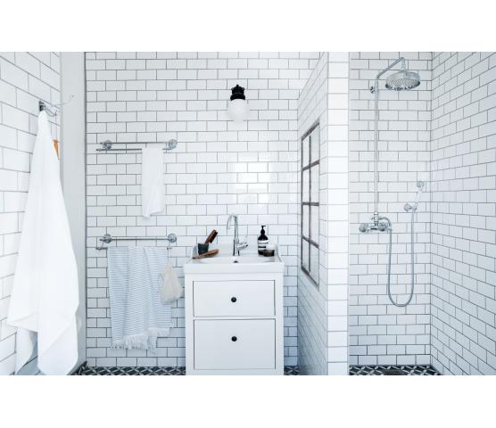 Har du et bad med runde eller firkantete former? Hvordan design har du på servantkrana og toalettet? Er det rette og harde linjer, eller er det mykt og hjemmekoselig? Et baderom med like former og linjer oppfattes ofte som svært harmonisk og helhetlig.