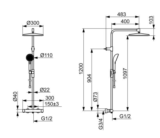 1. Størrelse på takdusj og hånddusj