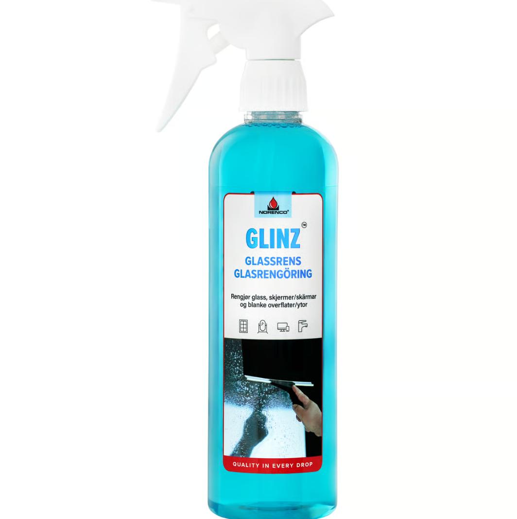 Oppnå krystallklare resultater med Noreco Glinz glassrens. Den effektive formuleringen rengjør speil, vinduer og andre blanke overflater – helt uten å etterlate skjolder eller film.