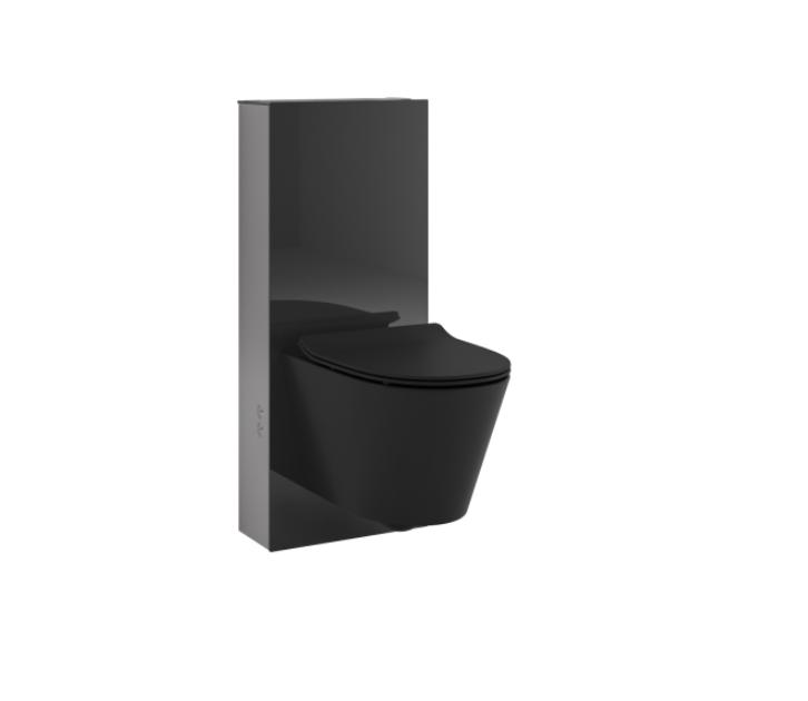 WC-modul med S-lås, kan enkelt erstatte en tradisjonell gulvstående modell. Kun 41cm bred - kan enkelt settes inn i eksisterende plass. Finnes i hvitt eller sort glass.