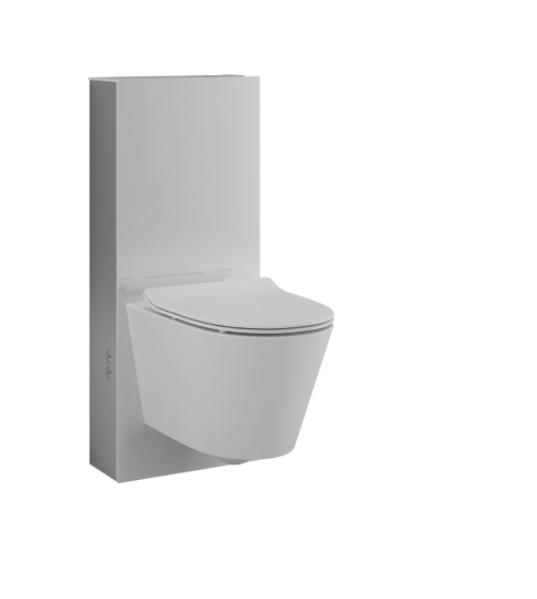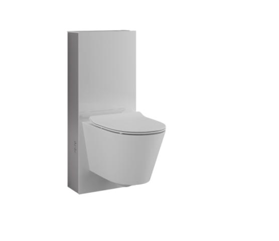 WC-modul med S-lås, kan enkelt erstatte en tradisjonell gulvstående modell. Kun 41cm bred - kan enkelt settes inn i eksisterende plass. Finnes i hvitt eller sort glass.